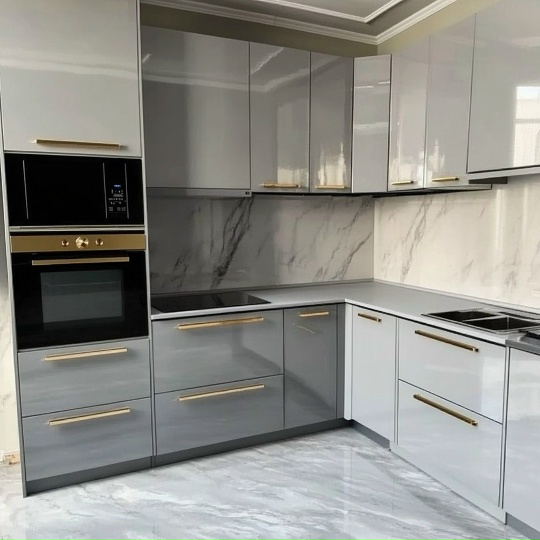 Фасады выполнены из МДФ с покрытием из износостойкой эмали, устойчивой к влаге, ударам и выгоранию. Цвет подбирается индивидуально по палитрам RAL или NCS, а также возможна установка скрытых ручек, систем push-to-open и встроенной техники. Кухня URBAN изготавливается по индивидуальному проекту с учетом всех пожеланий заказчика.