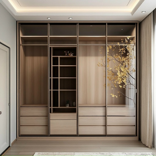 Внутри шкаф продуман до мелочей: штанги, полки, ящики и секции располагаются по вашему желанию. Возможна модульная или встроенная конфигурация. Фурнитура подбирается индивидуально: доводчики, подсветка, ручки и выдвижные системы.